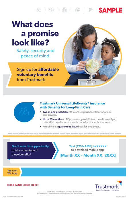 Poster to announce an enrollment to employees. Hang in common areas. Variable by industry, products, dates, cobranding and unique message.