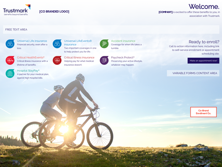 Template for developing turnkey employee 1-pagers advertising a specific enrollment and showcasing multiple products. Can be cobranded.