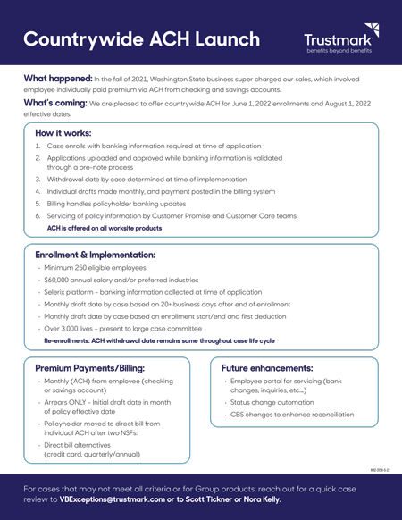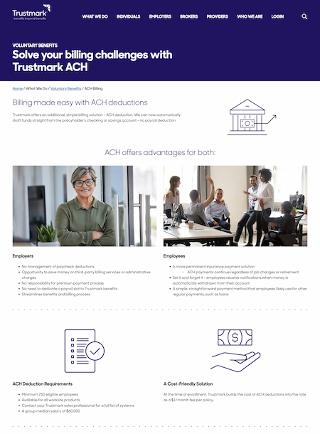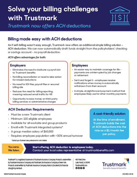 Overview of Trustmark ACH deduction advantages and requirements for employers and employees.