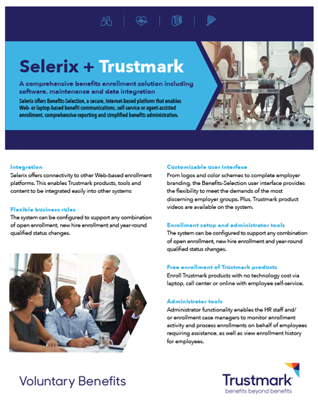 A document outlining Trustmark and Selerix’s relationship and benefits administration capabilities which can be printed or emailed digitally.