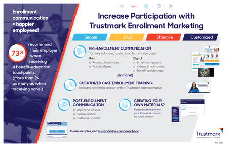 An infographic/placemat providing at a glance how Trustmark can support enrollments with communication.