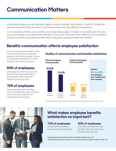 This slick highlights how effective communication can improve employees’ perception of their benefits and how Trustmark can help. Can be printed or emailed digitally.
