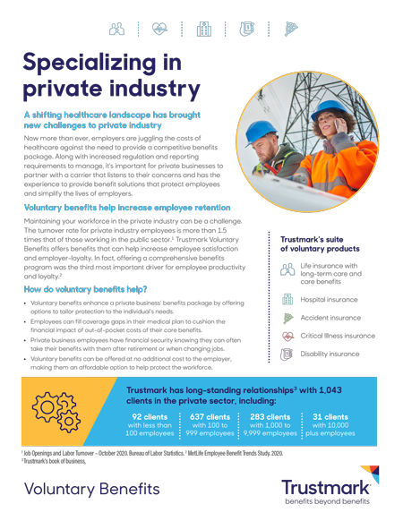 A slick that outlines Trustmark’s expertise in handling cases in the private sector. Can be emailed digitally or printed and handed out.