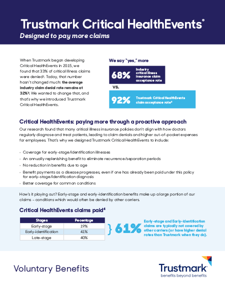 Demonstrates the value of offering Trustmark’s Critical HealthEvents for an employer. Can be printed or emailed as a PDF.